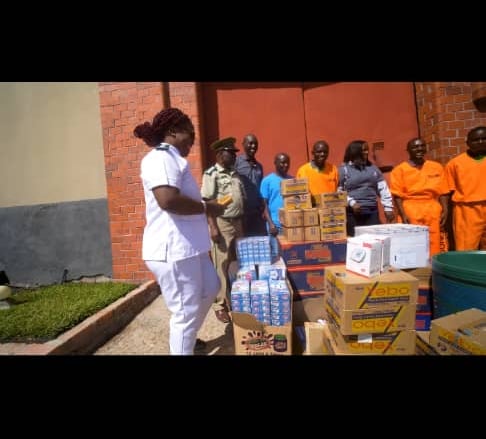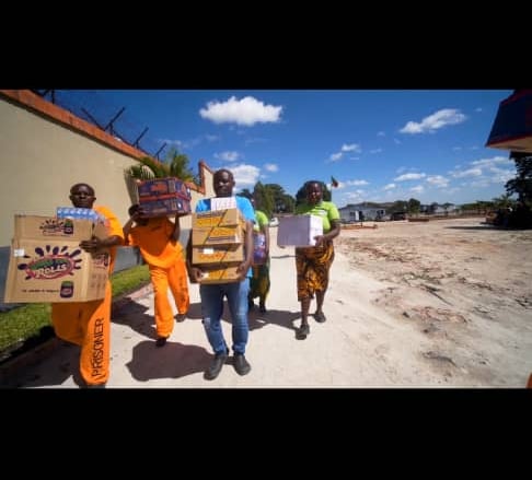 HPN Volunteers and prisoners bringing HPN medical supplies to a local men's prison in Chingola.